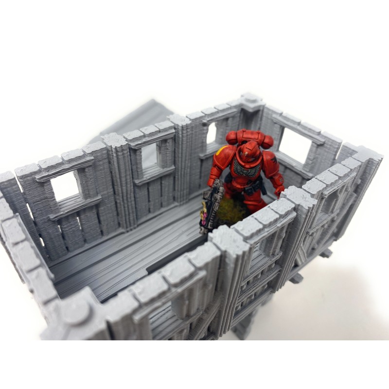 Porte de ville imprimée en 3D, avec toit et niveaux amovibles et intérieur détaillé.