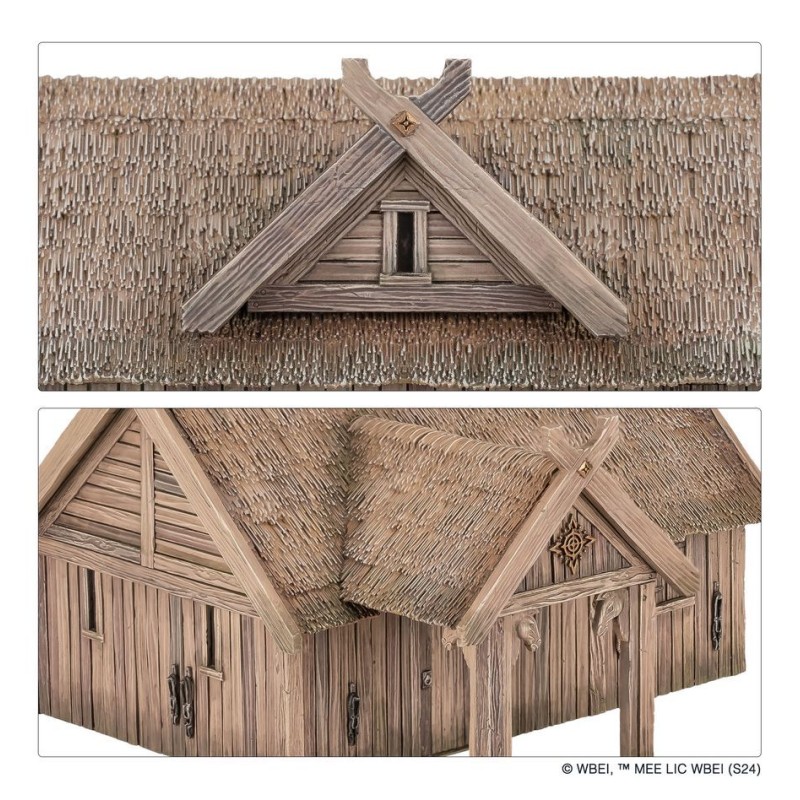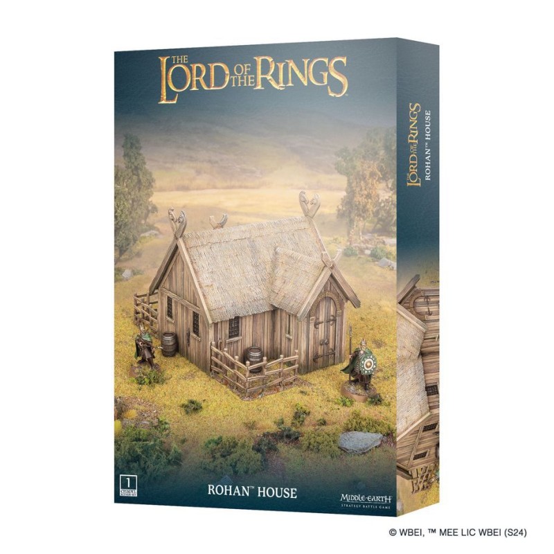 Ce kit en plastique permet d'assembler une Rohan House, un élément de décor pour votre table de Middle-earth Strategy Battle Game. Ce kit polyvalent offre un certain nombre d'options d'assemblage avec ses murs à double face (chacune ayant des détails différents), et un choix de décorations pour les linteaux du toit. Trois options de porche sont incluses, et le kit comporte aussi tout un ensemble de barrières, de tonneaux et de cordes pour décorer davantage cette maison.