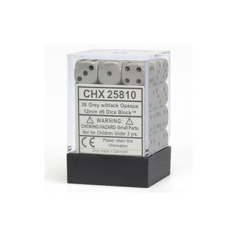 Dés: Set de 36 Dés 6 Opaque Gris Chessex