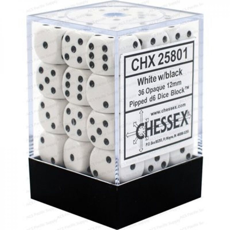 Dés: Set de 36 Dés 6 Opaque Blanc Chessex