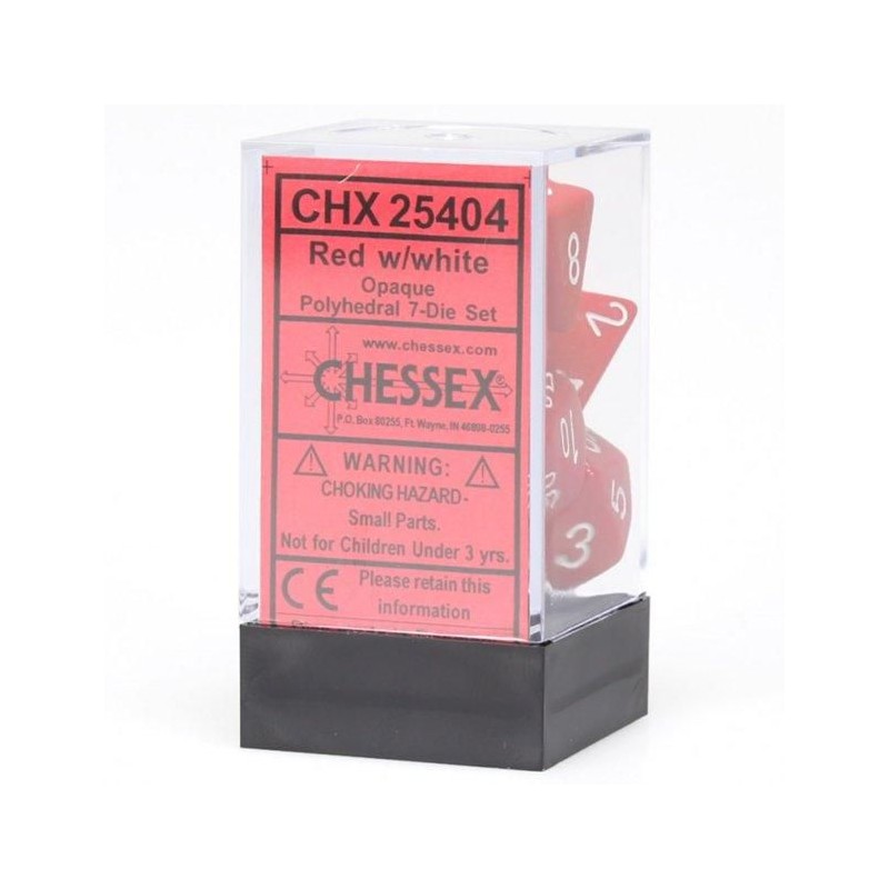 Dés: Set de 7 Dés JDR Opaque Rouge/Blanc