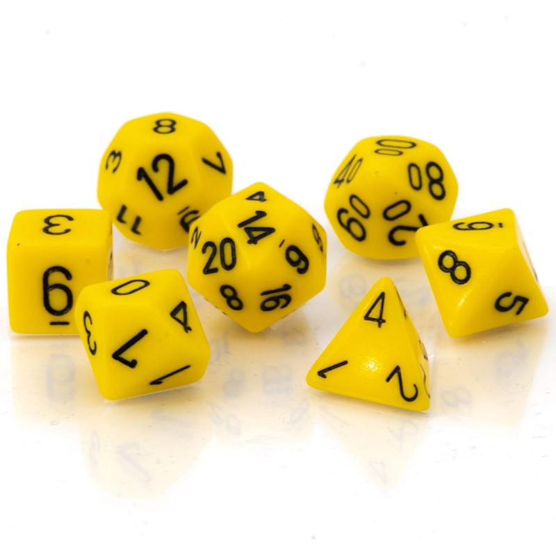 Dés: Set de 7 Dés JDR Opaque Jaune/Noir