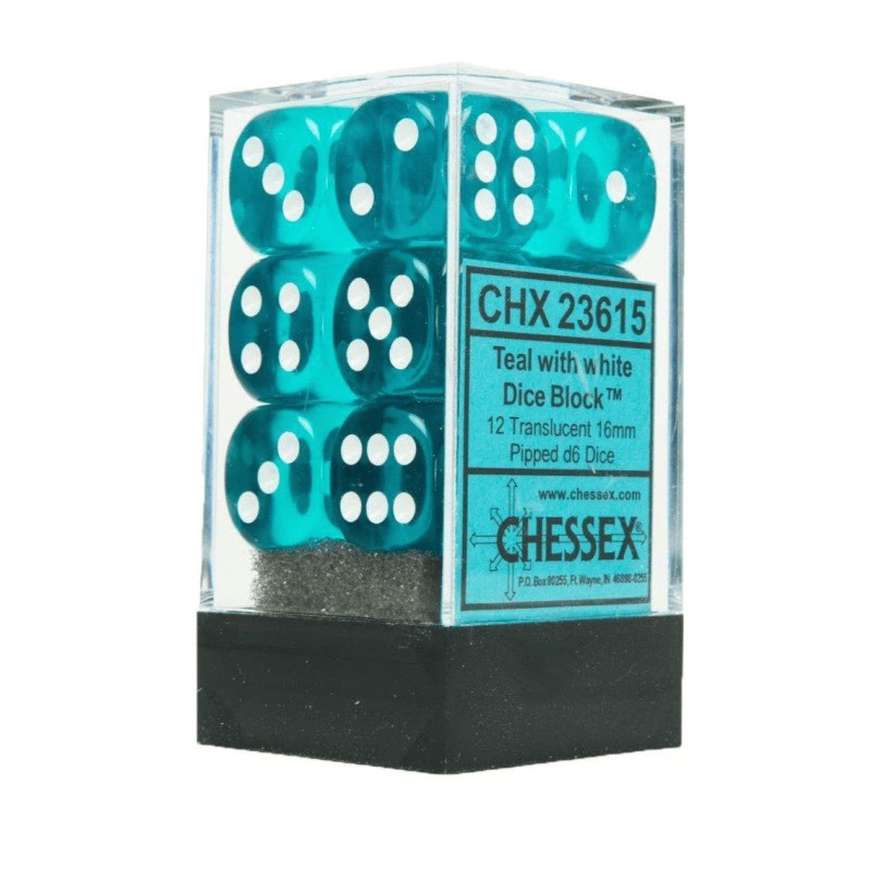Dés: Set de 12 Dés 6 Transparent Sarcelle/Blanc