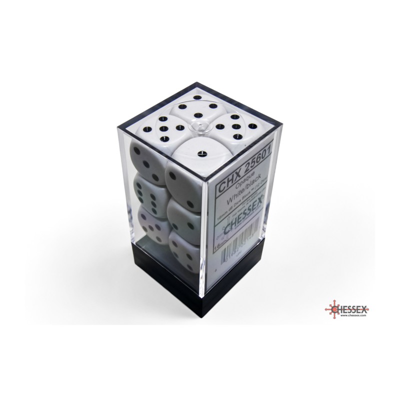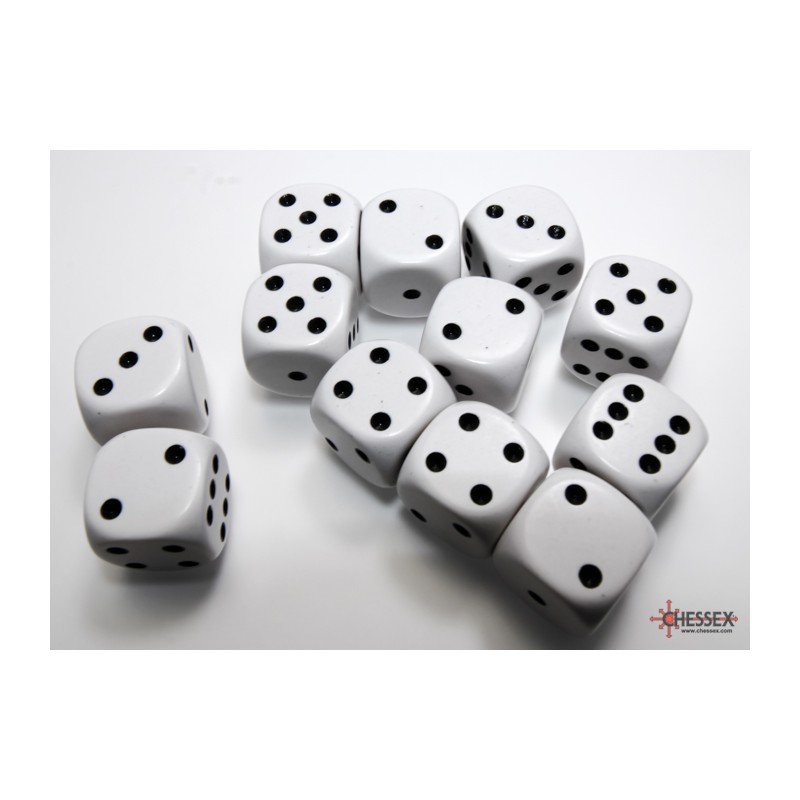 Dés: Set de 12 Dés 6 Opaque Blanc / Noir