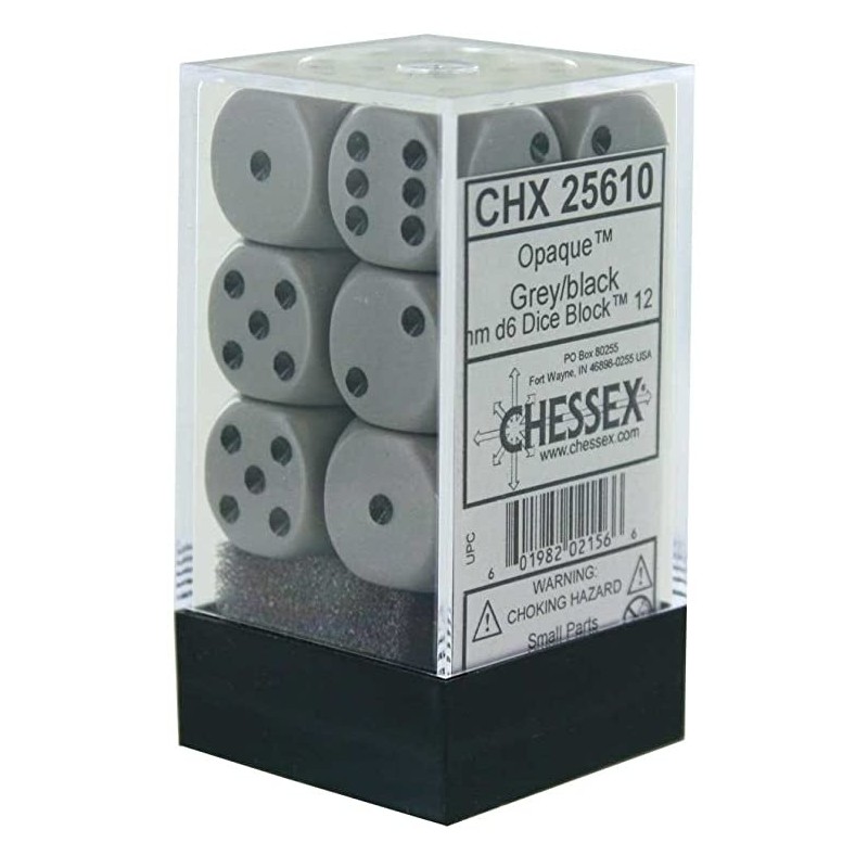 Dés: Set de 12 Dés 6 Opaque Gris / Noir
