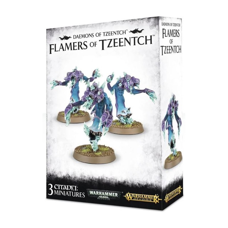 Description du produitCe kit plastique contient les composants nécessaires pour assembler 3 Flamers of Tzeentch, des jeteurs de sorts polycéphales dont les horribles bras bordés de dents dégouttent de feu Warp. Une figurine peut être assemblée en tant que Pyrocaster, semblant fait davantage de feu que de chair.