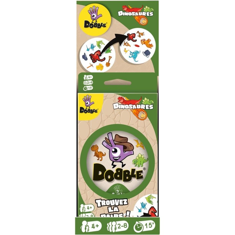 Description du produitDobble Dinosaures est une version thématique du célèbre jeu d’observation Dobble, mettant en scène des dinosaures et éléments préhistoriques.