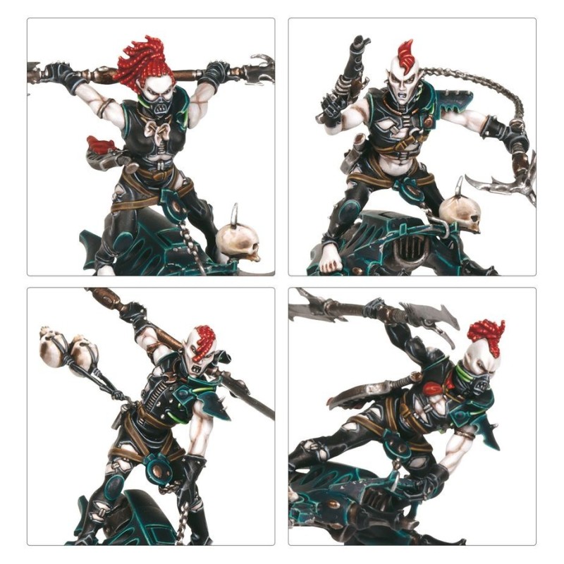 Description du produitLes Cultes Cérastes des Drukhari forment souvent des groupes de pillage pour lancer des attaques sur l'espace réel. Essentiellement constitués de Cérastes à pied, d'Écumeurs sur motojets et de Hellions sur surfs, ils frappent vite et fort, rivalisant entre eux pour réaliser les actions martiales les plus audacieuses. Ils frappent de nulle part, et après avoir trouvé ce qu'ils cherchaient, ils disparaissent dans la Toile sans laisser de trace.