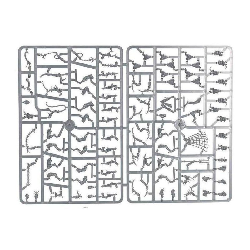 Cette boîte pleine à craquer est parfaite pour entamer une nouvelle collection de Drukhari ou étoffer une armée existante, à déchaîner dans les parties de Warhammer 40,000 tout en faisant des économies par rapport à un achat des kits au détail. Menés par une Succube qui charge en plein cœur des combats pour récolter une sanglante moisson, ces guerriers constituent une force agressive. Les Cérastes forment le noyau de ce bataillon, des gladiateurs à pied animés par une soif de sang et un sens cruel du spectacle. Les Hellions et les Écumeurs ajoutent de la vitesse à votre armée et lui permettent de contrôler le champ de bataille en allant chercher les objectifs les plus lointains, en harcelant l'ennemi et en éliminant les unités affaiblies. Deux Venom apportent un appui feu et permettent à votre infanterie d'avancer plus rapidement. Toutes ces unités combinées constituent une armée rapide qui frappe fort quand et là où vous le voulez, idéale à jouer avec le Détachement Spectacle de Cruauté, dont les règles se trouvent dans le Codex: Drukhari, disponible séparément.