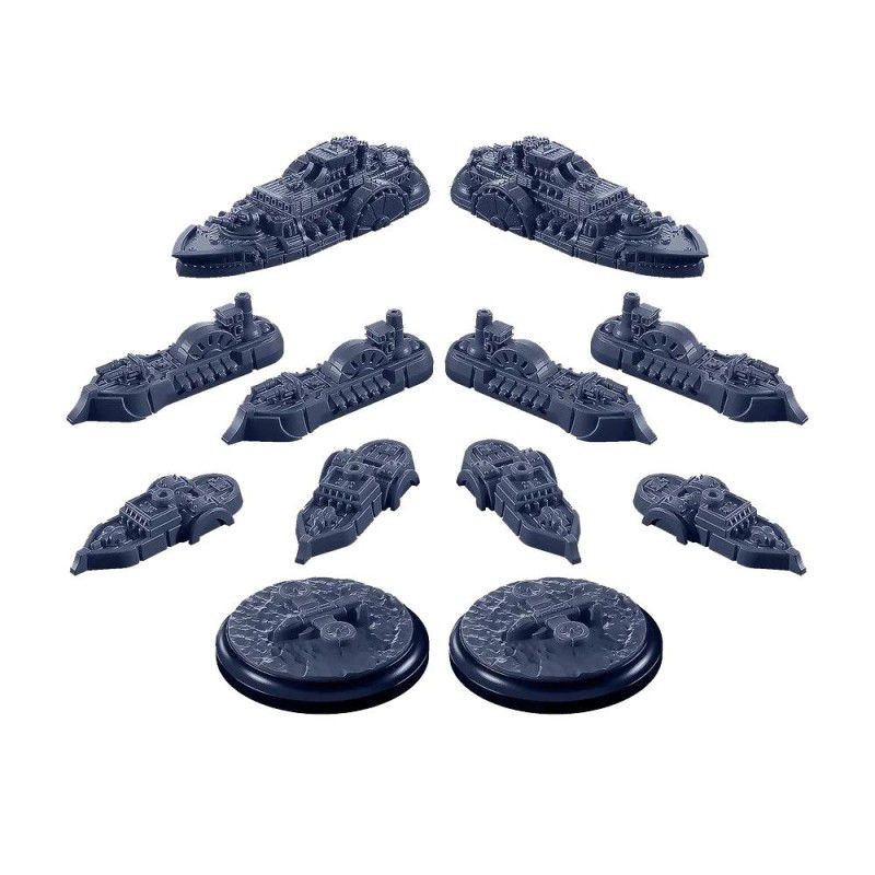 2x croiseurs vétérans de la guerre Ore (peuvent être construits comme Gettysburg, Providence, Saratoga ou Sumpter), 4x corvettes Springfield, 4x jetons d'escorte, 2x jetons Talon SRS