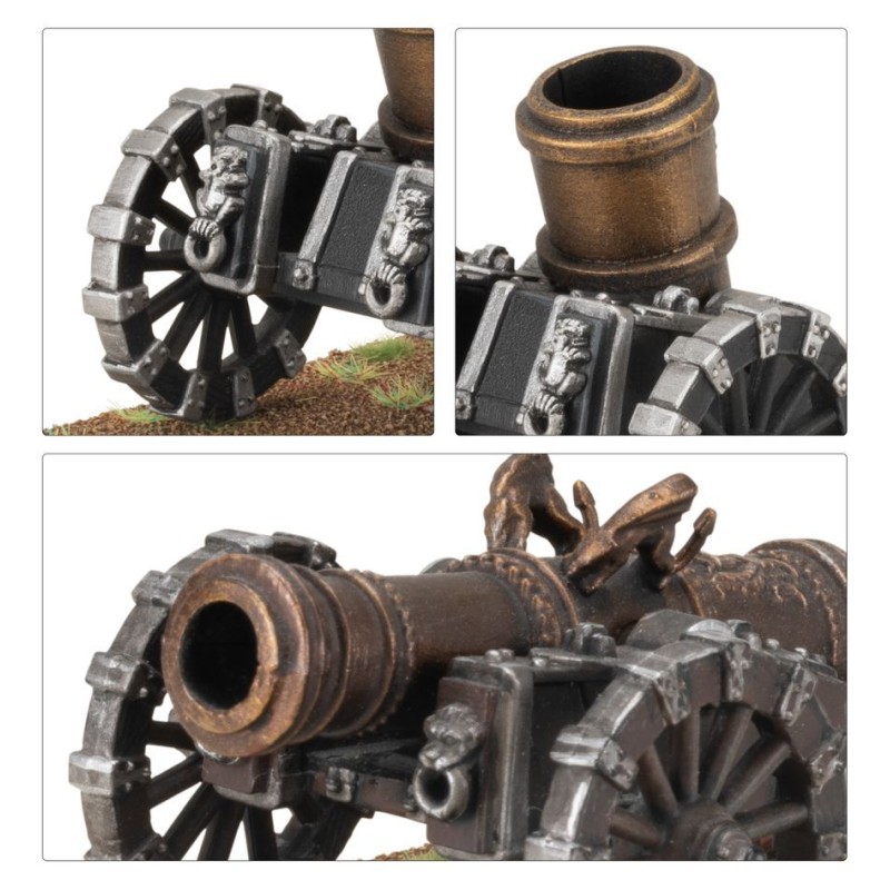 Description du produitLes grands canons de l'École d'Artillerie impériale sont la terreur des ennemis de l'Empire. Dans une détonation fracassante, ils envoient des boulets de fer percuter les rangs ennemis, où chaque impact creuse des sillons sanglants dans les régiments resserrés.