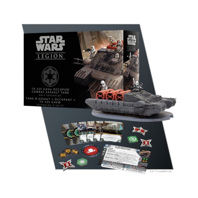 Lourdement armé et capable de transporter des marchandises ou du personnel, l'un de ces chars peut être un atout polyvalent pour les détachements de stormtroopers en mission d'occupation. Avec l'extension d'unité TX-225 GAVw Occupier Combat Assault Tank, vos armées impériales gagnent une seule figurine TX-225, finement sculptée et menaçante, qui peut travailler en tandem avec vos troupes terrestres pour imposer la volonté de l'Empire partout où elle est affectée. En plus de cette magnifique figurine, cette extension contient également toutes les cartes d'unité, les cartes d'amélioration et les jetons dont vous aurez besoin pour l'ajouter à vos armées et l'équiper pour la bataille.