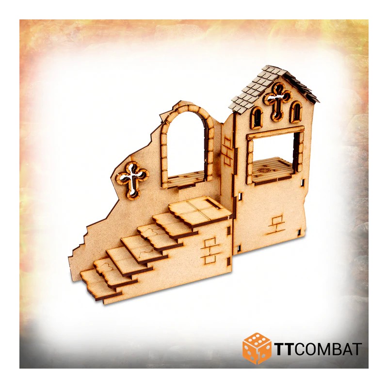Savage Domain : Abandoned Abbey est fabriqué en MDF 3 mm et en carton gris 1 mm. Il s'agit d'un kit de décor idéal pour les jeux d'escarmouche fantastiques et les jeux de rôle, et il s'adapte parfaitement aux jeux et figurines de 28-32 mm.