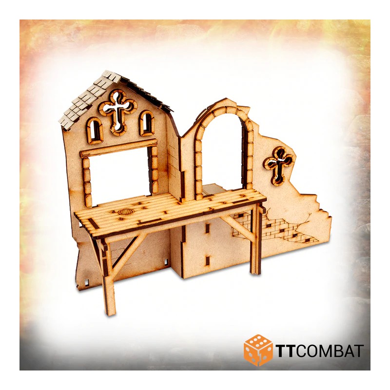 Comme tous nos kits Savage Domain, l' abbaye est complètement modulaire, utilisant des fiches simples pour connecter les pièces. Vous pouvez faire de longs murs, des cours closes et des environnements urbains denses.