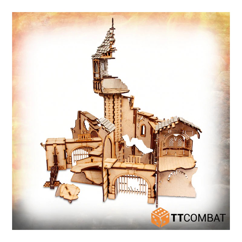 Comme tous nos kits Savage Domain, la tour est complètement modulaire, utilisant des fiches simples pour connecter les pièces. Vous pouvez faire de longs murs, des cours closes et des environnements urbains denses.