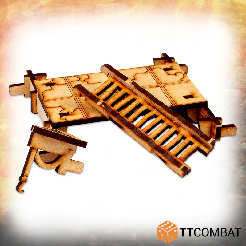 Chacune des pièces du kit suit également une structure de grille stricte, ce qui signifie qu'il peut être utilisé aussi bien pour les jeux de rôle que pour les jeux d'escarmouche.