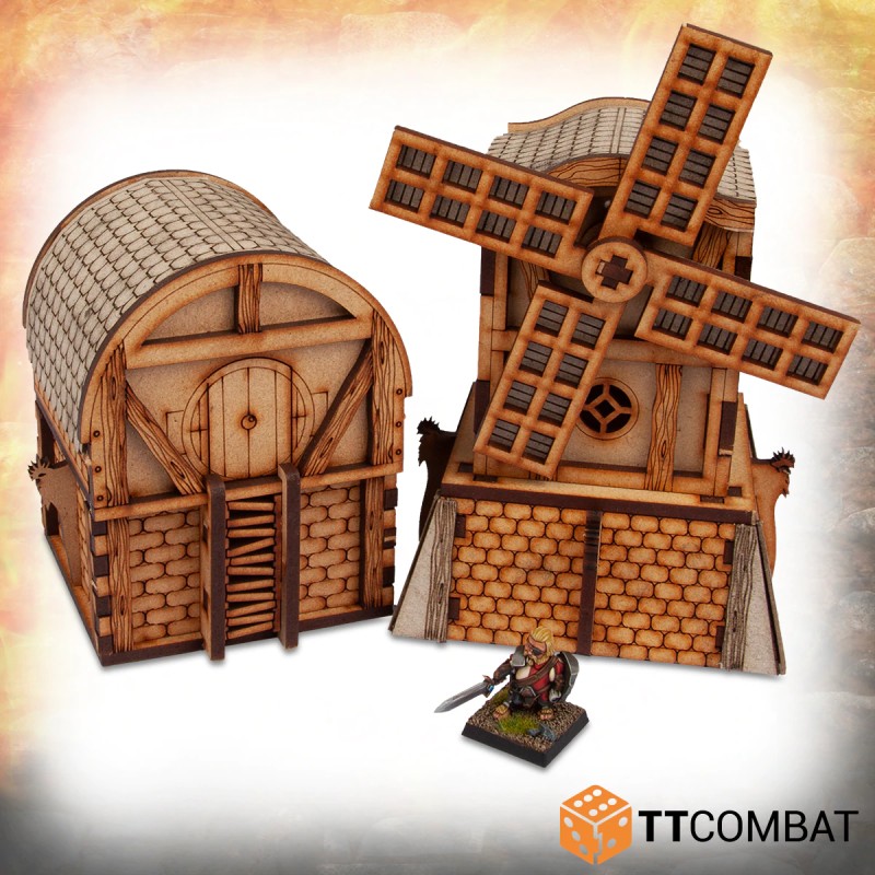 Le kit de décor Halfling Windmills est fabriqué en MDF de 3mm d'épaisseur et en carton gris d'1mm d'épaisseur. À assembler et à peindre.