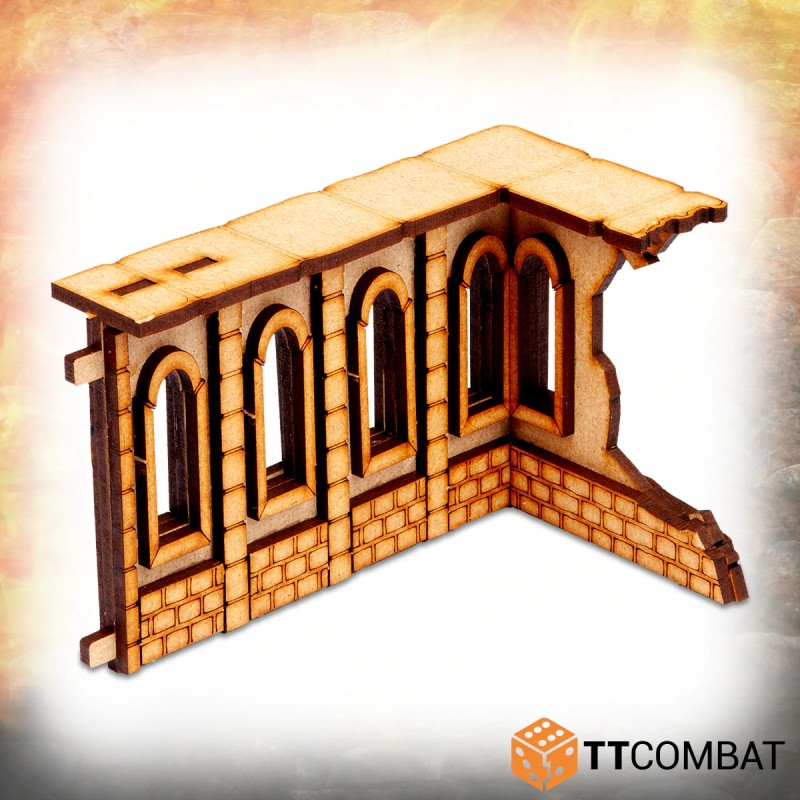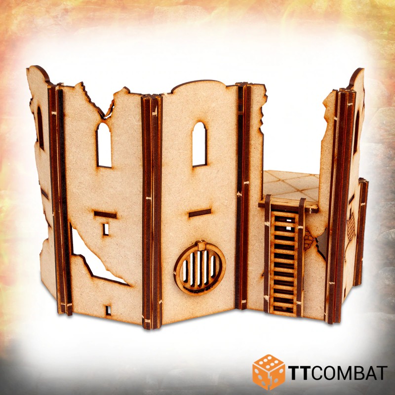 Savage Domain : Castle Town Walls est fabriqué en MDF 3 mm et en carton gris 1 mm. Il s'agit d'un kit de décor idéal pour les jeux d'escarmouches fantastiques et les jeux de rôle, et il s'adapte parfaitement aux jeux et figurines de 28-32 mm.