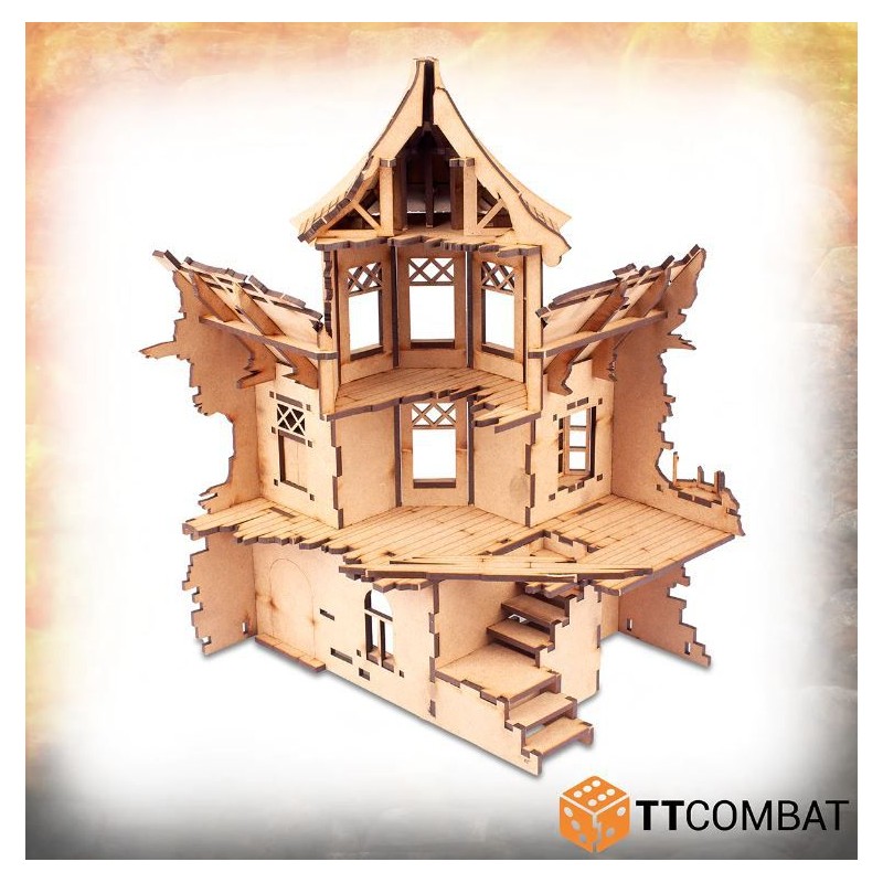 Savage Domain : Cobbler's Townhouse est fabriqué en MDF 3 mm et en carton gris 1 mm. Il s'agit d'un kit de décor idéal pour les jeux d'escarmouches fantastiques et les jeux de rôle, et il s'adapte parfaitement aux jeux et figurines de 28-32 mm.