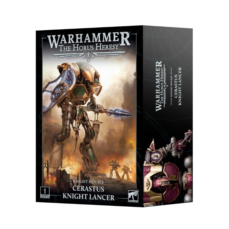 Ce kit plastique permet d'assembler un Chevalier Lancier Cerastus, un Chevalier rapide et agressif armé pour le combat rapproché. Plus grand encore que ses cousins de classe Questoris, le Chevalier Lancier possède de longues jambes qui lui permettent de traverser le champ de bataille en un clin d'œil. Il repousse les attaques avec son gantelet-bouclier ionique en se ruant en avant, déchaînant des tirs crépitants de sa colossale lance-choc montée sur son bras avant de charger pour empaler les menaces les plus imposantes.