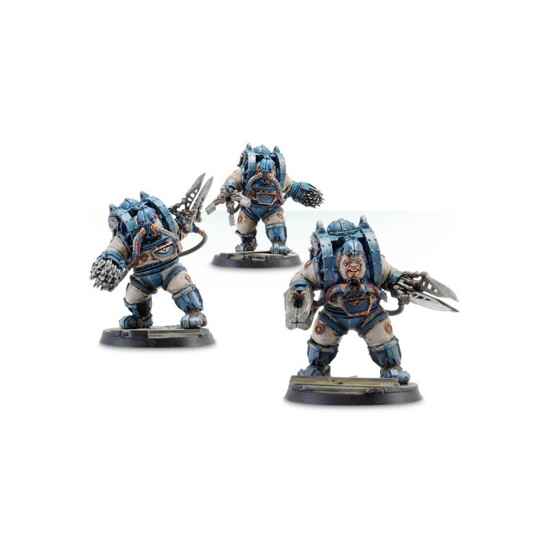 Description du produitS'appuyant sur la structure déjà massive d'un Ogryn, les escouades Charonite de Solar Auxilia ont été modifiées biochimiquement et cybernétiquement à l'aide de technologies anciennes, probablement d'origine xenos, qui ont été jugées impies par le Mechanicum. Le résultat est une créature qui suivra aveuglément les ordres, mais qui, sur simple pression d'un bouton, deviendra une brute sauvage et quasi inarrêtable.