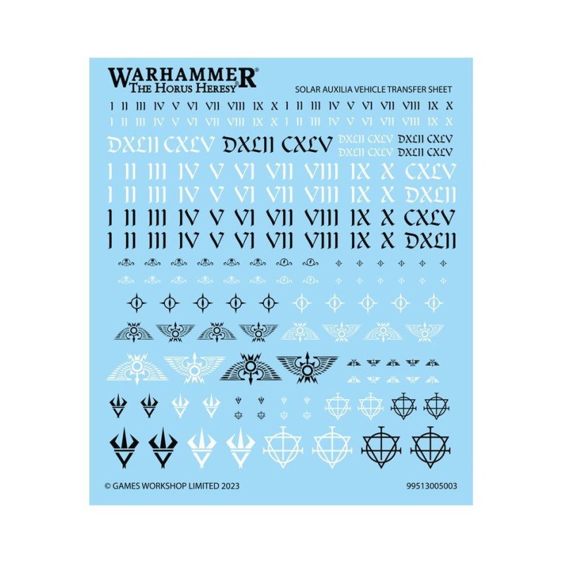 Ce kit est composé de 166 éléments en plastique ainsi que d'une Planche de Décalcos de Véhicule des Solar Auxilia proposant 180 décalcos de grande qualité. Cette figurine est fournie non peinte et nécessite assemblage.