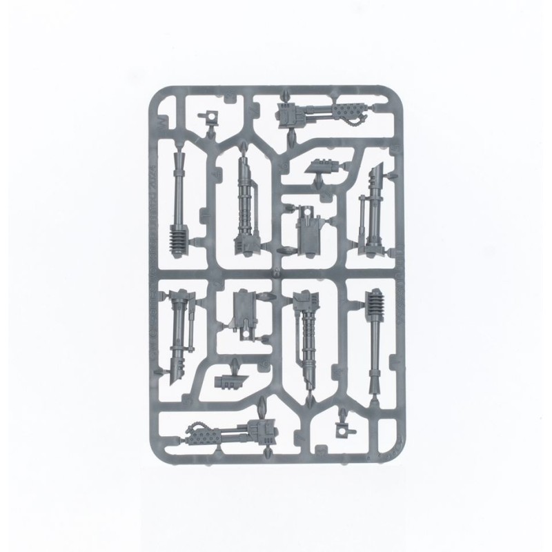 Ce kit contient les éléments nécessaires pour améliorer votre Leman Russ avec un missile traqueur et une lame de bulldozer, et l'écoutille de tourelle peut être assemblée avec ses portes fermées, ou ouvertes pour accueillir un artilleur des Solar Auxilia avec une arme sur pivot: un lance-flammes lourd, un multi-laser ou une mitrailleuse. Vous trouverez également de nombreux élémenst esthétiques, comme des symboles, des plaques de blindage, un observateur et un choix de têtes d'équipage.