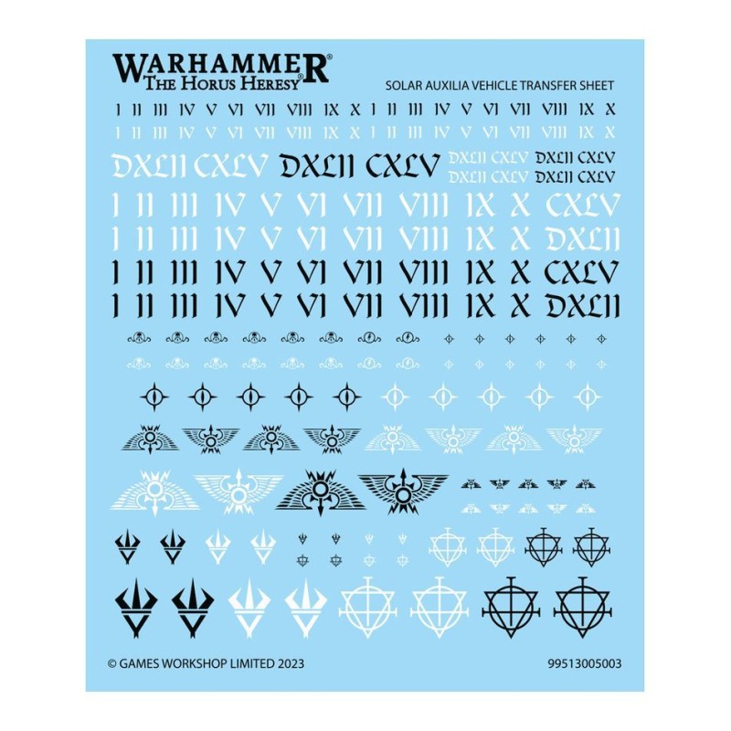 Ce kit est composé de 170 éléments en plastique, ainsi que d'une Planche de Décalcos de Véhicule des Solar Auxilia proposant 180 décalcos de grande qualité. Cette figurine est fournie non peinte et nécessite assemblage.