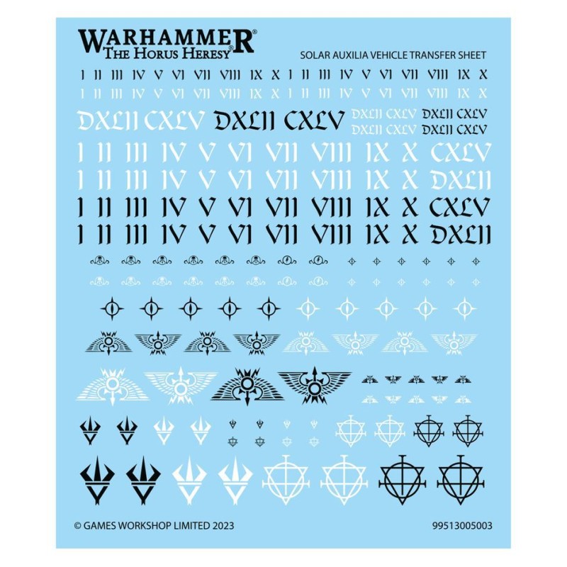 Ce kit est composé de 187 éléments en plastique ainsi que d'une Planche de Décalcos de Véhicules des Solar Auxilia porposant 180 décalcos. Cette figurine à emboîter peut être assemblée sans colle et est fournie non peinte.