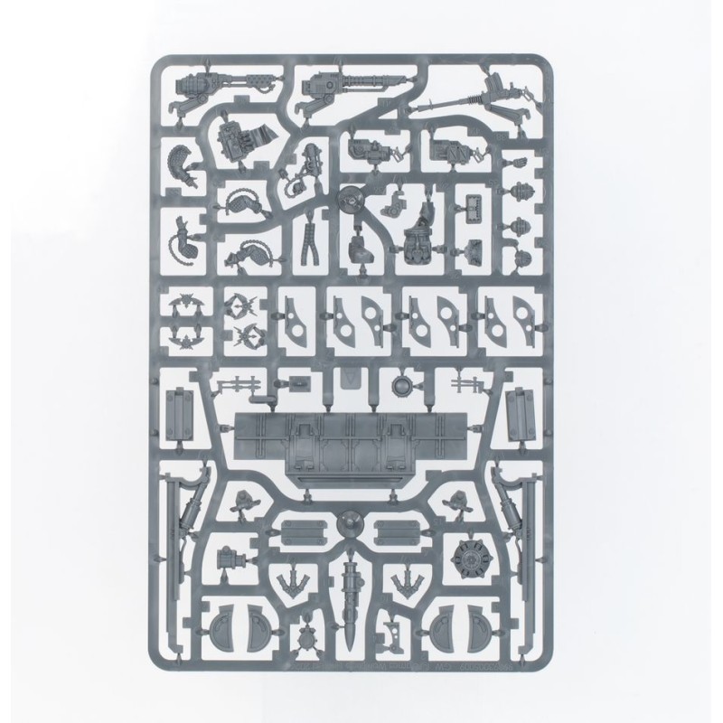 L'écoutille avant du char peut être assemblée avec des portes fermées ou ouvertes pour recevoir un observateur ou un artilleur des Solar Auxilia, ce dernier aux commandes d'une arme sur pivot au choix: un lance-flammes lourd, un multi-laser ou une mitrailleuse lourde. Ce kit contient les éléments nécessaires pour doter votre Basilisk ou Medusad'un missile traqueur et d'une lame de bulldozer, et vous trouverez des options esthétiques comme des symboles et plusieurs têtes d'artilleur au choix.