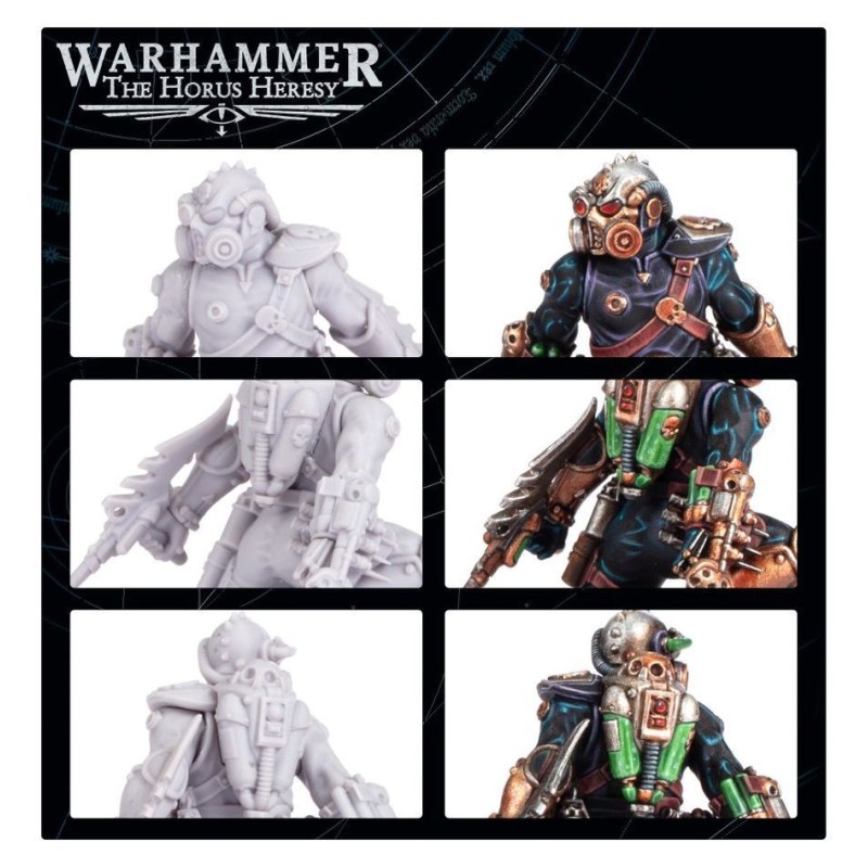 Description du produitLes Assassins du Clade Venenum sont des empoisonneurs hors pair, chacun étant un guerrier de l'ombre hautement entraîné et génétiquement amélioré qui a passé des années à étudier intensément les sciences alchimiques et biologiques. Les Assassins du Clade Venenum sont sélectionnés parmi les meilleurs artisans en toxines de leur ordre, maîtres dans la création et l'amélioration de poisons exotiques, de philtres toxiques et de virus recombinants qui infligent la mort sans laisser de trace métabolique. Certains des venins les plus mortels de l'arsenal de la Clade ne laissent aucune trace de la cible elle-même, réduisant la victime à une flaque fumante de matière moléculaire désassemblée.