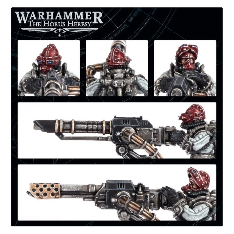 Ce kit d'amélioration en résine en plusieurs parties permet de construire trois équipages de chars Solar Auxilia, conçus pour être compatibles avec les écoutilles d'une variété de véhicules Solar Auxilia. Chaque artilleur est vêtu de l'armure vide caractéristique des Solar Auxilia et peut tirer avec une arme montée sur un pivot - le kit comprend un lance-flammes lourd et deux multi-lasers, ainsi que des câbles d'alimentation et de carburant.