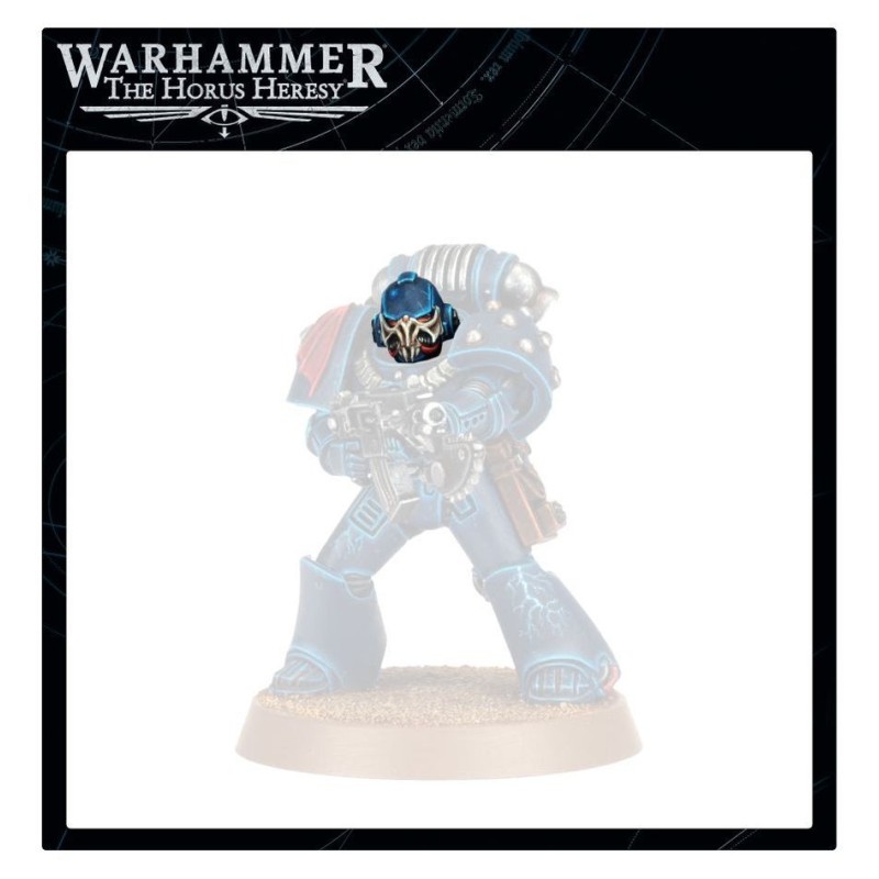 Ce kit d'amélioration permet de personnaliser les légionnaires du set MKVI Tactical Squad avec de nouvelles têtes, en remplaçant les casques à bec standard par des masques de terreur à tête de mort. Le kit comprend six têtes casquées dans un design, et trois dans un autre, ainsi que deux têtes conçues pour les sergents - une tête nue avec un sourire arrogant et des cheveux gominés, et un casque avec d'impressionnantes ailes de chauve-souris au-dessus de la plaque faciale au motif osseux. Répartissez ces éléments dans votre armée pour ajouter un peu de saveur à la Légion VIII, ou équipez des escouades entières pour un look d'élite unifié.