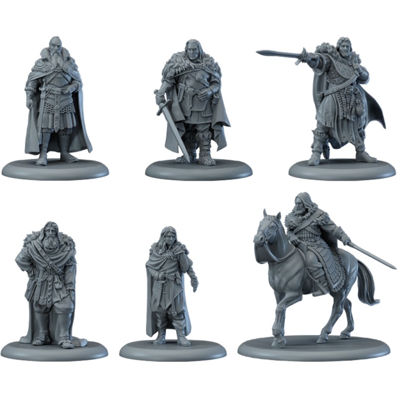 Cette boîte contient 28 cartes (8 Attachements, 2 Non combattant, 18 Tactiques) et 6 figurines de Héros de la Garde de Nuit : Cotter Pyke, Yoren, Satin, Eddison Tallet, Benjen Stark, Sir Denys Mallister.