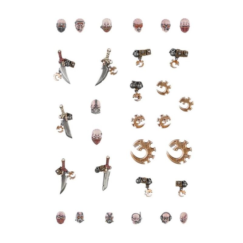 Cette grappe d'améliorations permet d'affilier de nombreuses figurines de Cadia et de l'Astra Militarum au sournois Culte Genestealer. Montez des escouades de figurines sinistres uniques et décorez vos véhicules avec les pièces et icônes