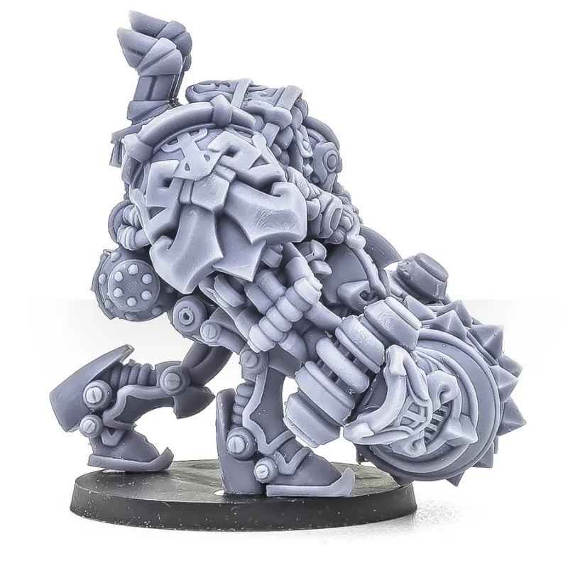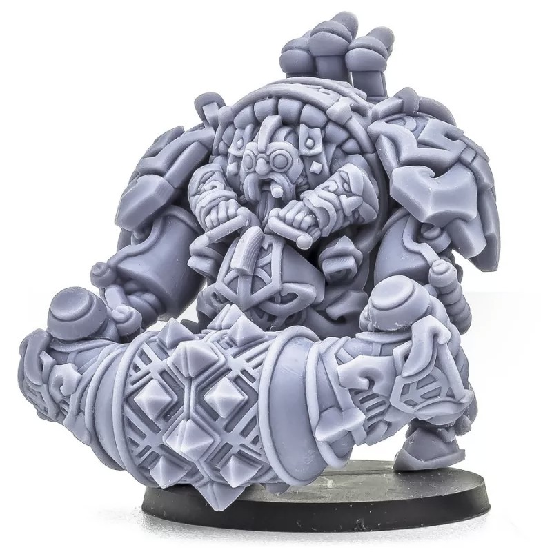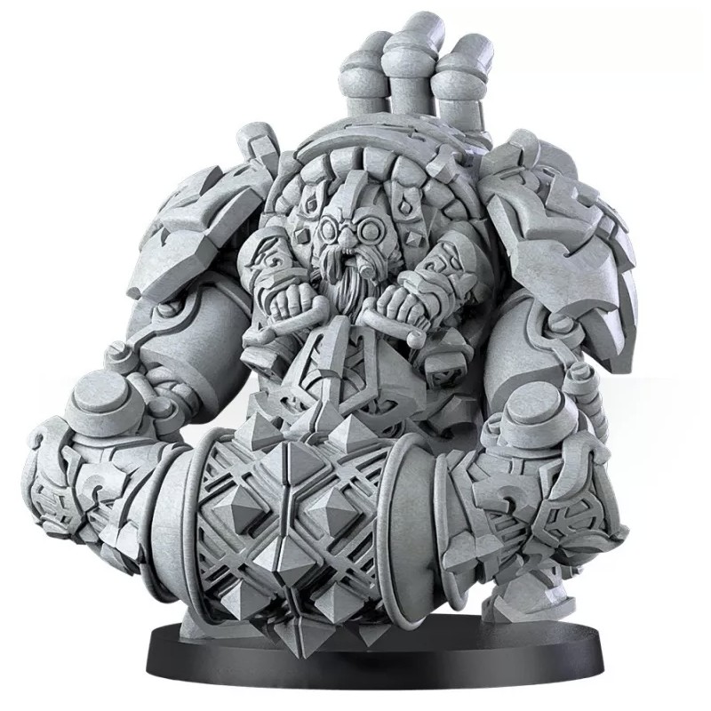 Des cylindres grinçants s'agitent et sifflent tandis que cette abomination mécanique trébuche sur le terrain, avançant sans relâche avec un sillage de nains frénétiques qui poursuivent le carnage.