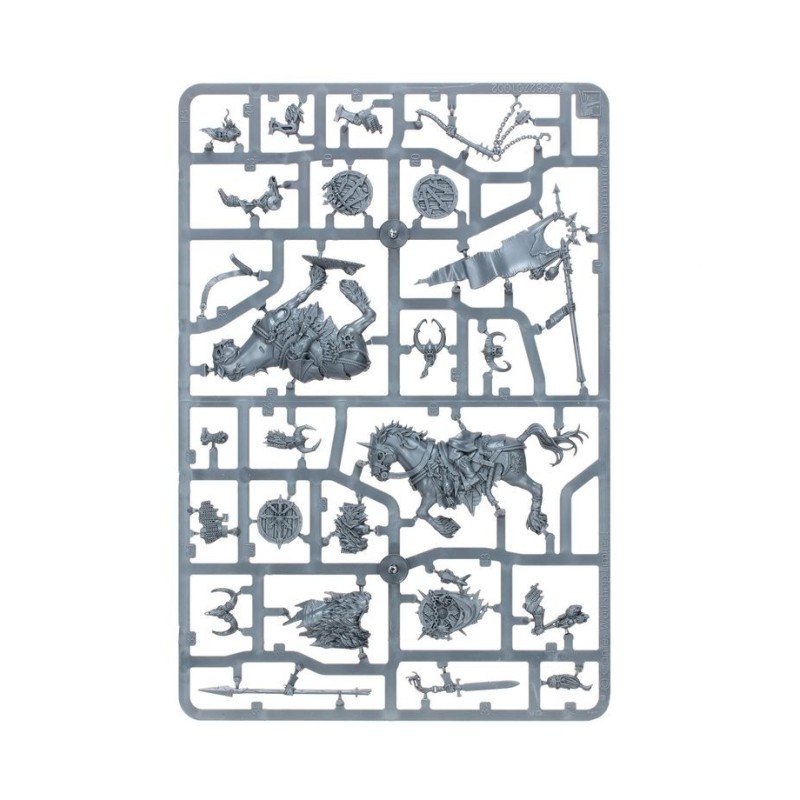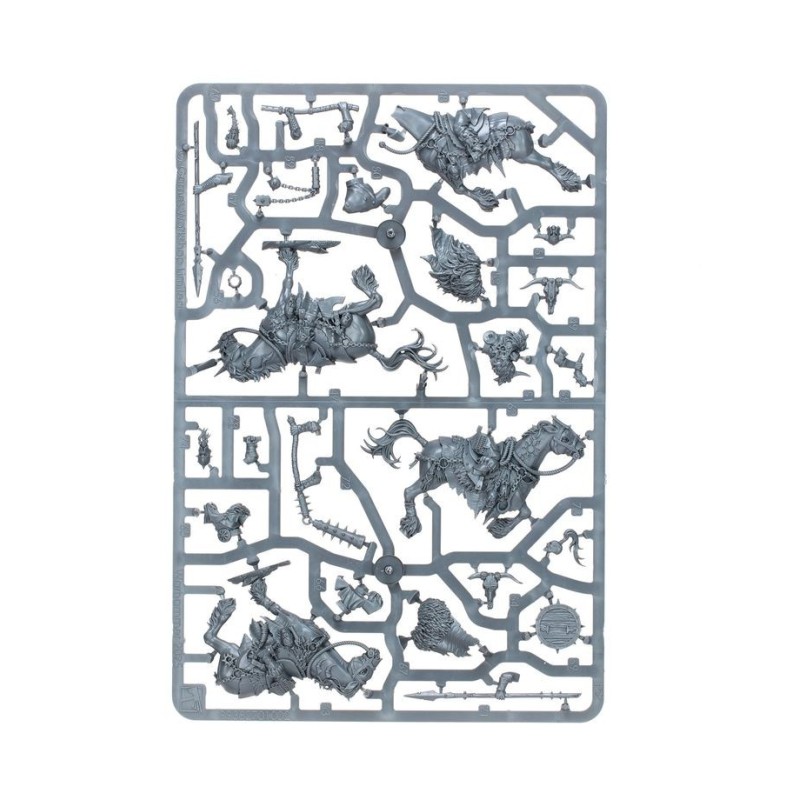 Le contenu de cette boîte vous permet d'assembler une grande unité de 10 cavaliers, ou deux unités plus petites de 5 cavaliers, chacune dotée de ses propres champion, musicien et porte-étendard optionnels. Chaque Maraudeur peut être équipé d'une lance et d'un bouclier ou d'un fléau, et dispose d'un choix de têtes nues ou casquées.