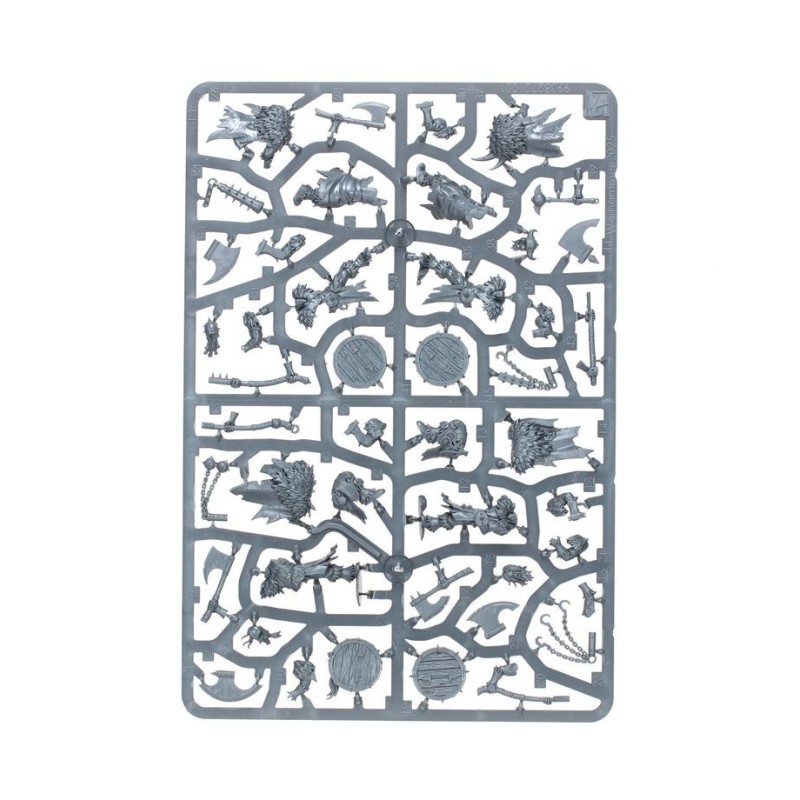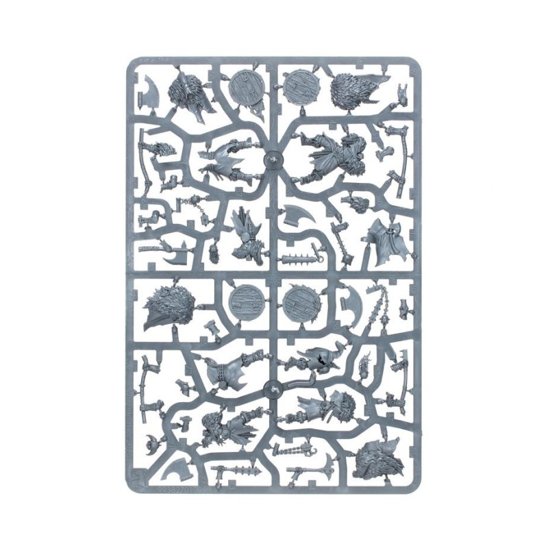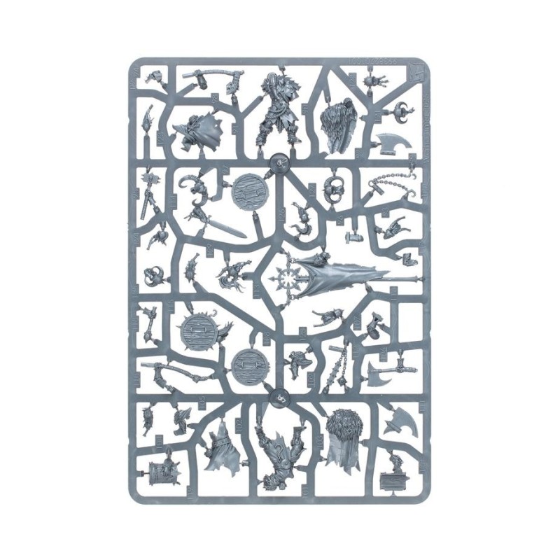 Le contenu de cette boîte vous permet d'assembler une grande unité de 20 guerriers, ou deux unités plus petites de 10 guerriers, chacune dotée de ses propres champion, musicien et porte-étendard optionnels. Chaque Maraudeur peut être équipé d'une arme de base et d'un bouclier, d'une arme lourde ou d'un fléau. Les armes de base et boucliers sont interchangeables entre les figurines, et chacune d'entre elle dispose d'un choix de têtes nues ou casquées.