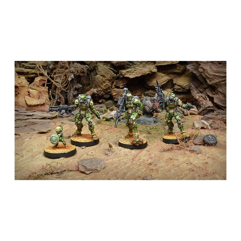 Ce blister contient 3 figurines en métal pour le jeu Infinity. Les socles sont inclus. Les figurines sont à assembler et à peindre.