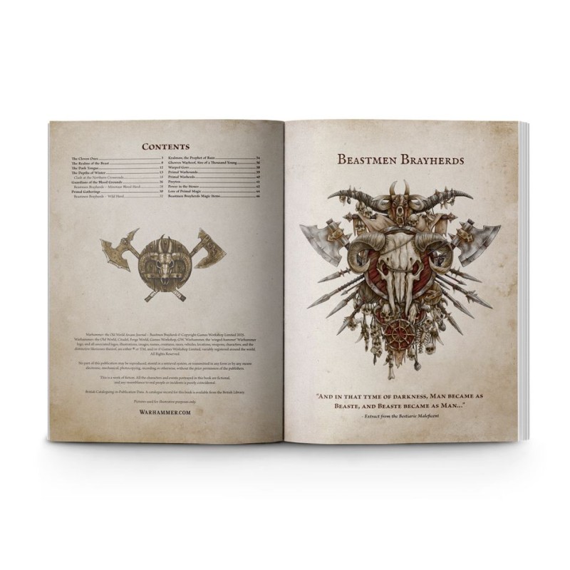 - Hordes d'hommes-bêtes : Les règles pour engager deux armées d'infamie uniques - les Gardiens des Terres de Sang et les Rassemblements Primaires.