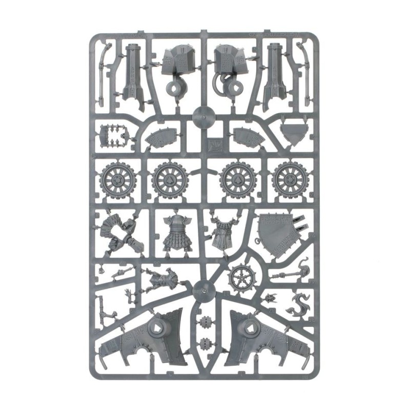 Ce kit en plastique permet d'assembler un Lance-fusées Hurlemort, une terrifiante arme de siège pour vos armées de Forgeruines de Hashut dans les parties de Warhammer Age of Sigmar. Ingénieusement conçues par des duardins dévoyés, les roquettes tirées par cet engin fusionnent une charge explosive avec des énergies démoniaques et sont capables d'abattre les plus imposantes des cibles. Le kit contient deux artilleurs duardins et un assistant hobgrot pour actionner votre machine de guerre dévastatrice, qui est par ailleurs ornée de runes hashutites et de l'icône du taureau, ce qui en fait un excellent projet de peinture.