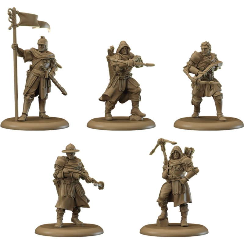 Cette boîte d’unité offre aux joueurs une unité à distance d’une grande fiabilité. Étant neutres, la plupart des armées peuvent les engager. Leur entraînement intensif avec leurs arbalètes fait que leurs tirs font presque toujours mouche. Ils sont également formés à aider d'autres unités amies, manœuvrant pour soutenir les alliés attaqués.