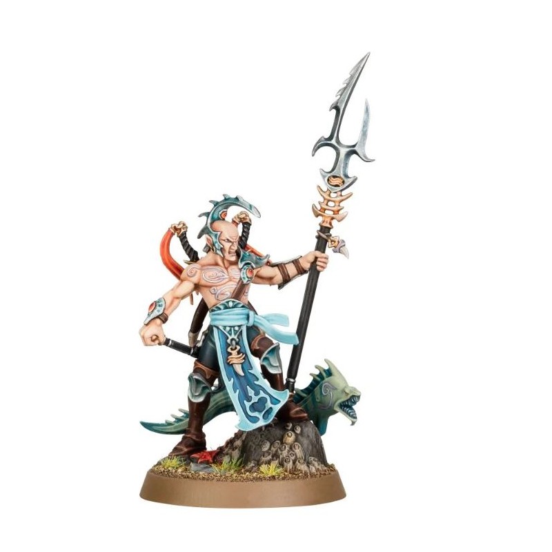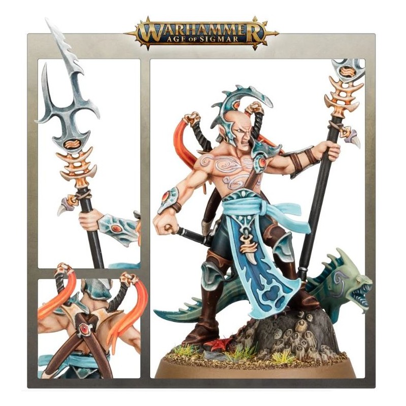 Description du produitLes Asservisseurs sont des Akhéliens rusés et marqués par la mer qui conduisent les osts de Namarti au combat. Ces maîtres duellistes, experts dans le maniement de toutes sortes d'armes, et accompagnés de cruelles murènes gueule d'acier, moissonnent leurs ennemis avec mépris. Souvent exilés de la société des Idoneths, les Akhéliens aiment prouver leur valeur en menant les serfs Namarti à la victoire.