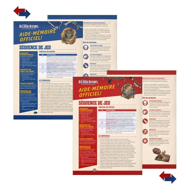 - Contient deux équipes complètes, un livre de règles relié, un terrain double face, des dés, des pions et des accessoires
