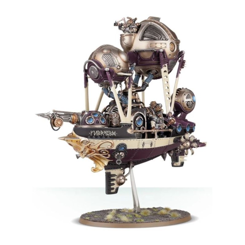 Description du produitLa proue arbore une figure de proue patibulaire à l'effigie d'un ancêtre, et l'équipage duardin est mis en situation – un capitaine se tient à la barre face aux instruments, un navigateur est perché dans le nid-de-pie, sextant levé, et un Endrinrigger manie la burette et le marteau, rajustant les rivets et lubrifiant les pièces sans relâche pour maintenir la Frigate en l'air. Ces détails peuvent généralement se placer de plusieurs façons, et il y a toute la place sur la coque pour baptiser le navire. À peindre en runes duardines pour faire authentique!