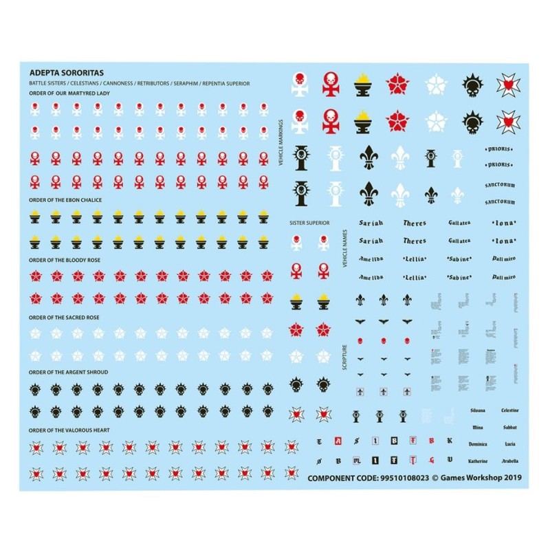 – 1x Planche de Décalcos de l'Adepta Sororitas comportant 290 décalcos de grande qualité