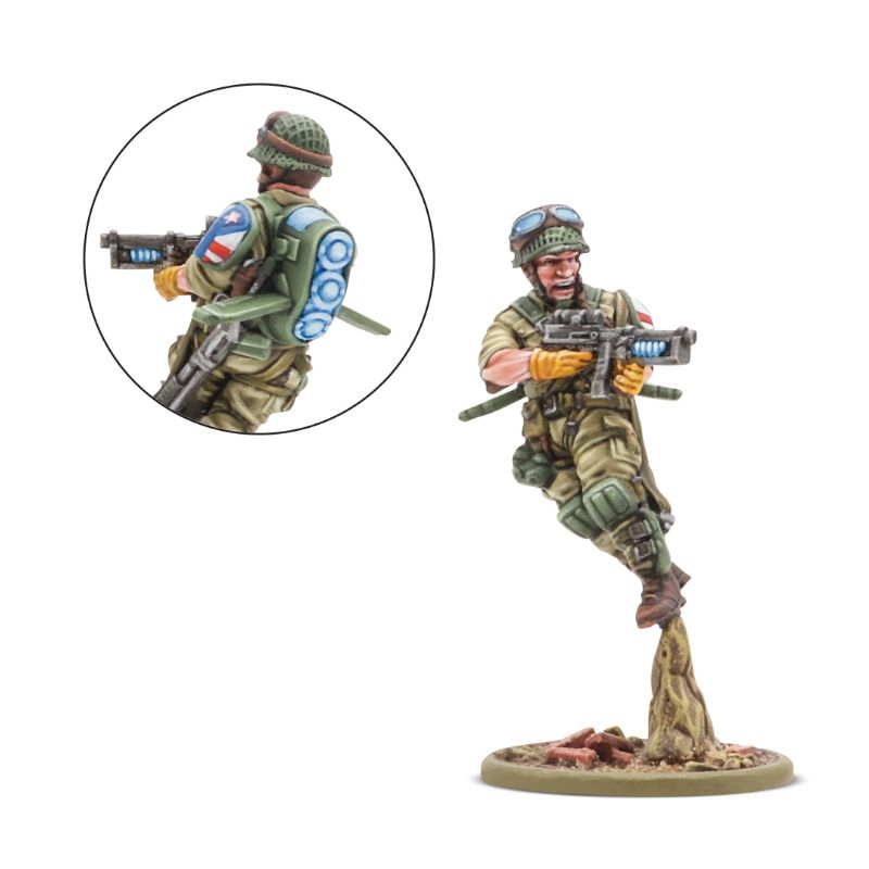 À la tête de toute la force se trouve un commandant de peloton exclusif, disponible uniquement dans cette boîte. Ce vétéran Firefly est équipé du même pack repulsorlift et du même M1X Thompson que ses hommes, ce qui lui permet de mener ses troupes au front et d'utiliser ses capacités spéciales chaque fois que cela est nécessaire.
