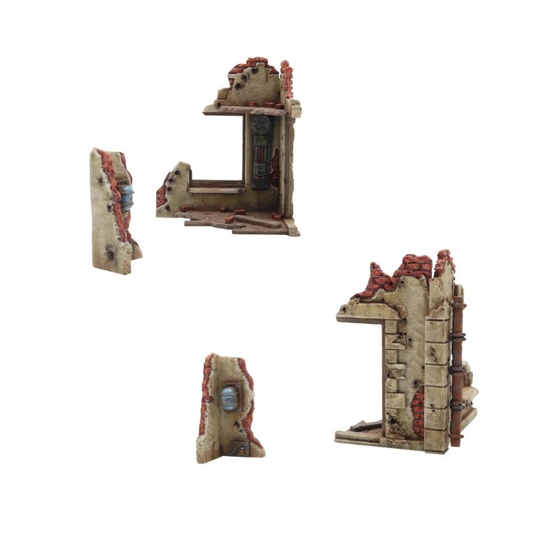 - Des bâtiments en ruine en plastique
