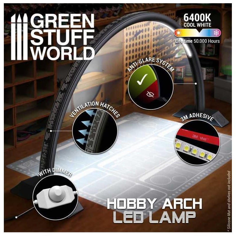 Il se distingue par sa conception moderne de refroidissement vertical qui permet de longues sessions de peinture et de modelage, son système anti-éblouissement latéral, son régulateur d'intensité lumineuse, ainsi que la possibilité de fixer plusieurs supports de caméra streamer spécialement adaptés pour pouvoir vous enregistrer pendant que vous travaillez. Les supports sont également disponibles dans notre catalogue.