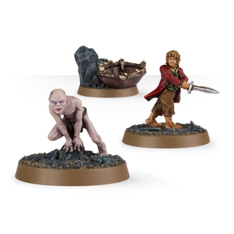 Ce set comprend Bilbo Baggins dans son long manteau et son pantalon court de Hobbit, et tenant Dard, ainsi que Gollum, rampant sournoisement sur un socle rocheux. Le set inclut aussi une embarcation primitive contenant des restes de poisson.
